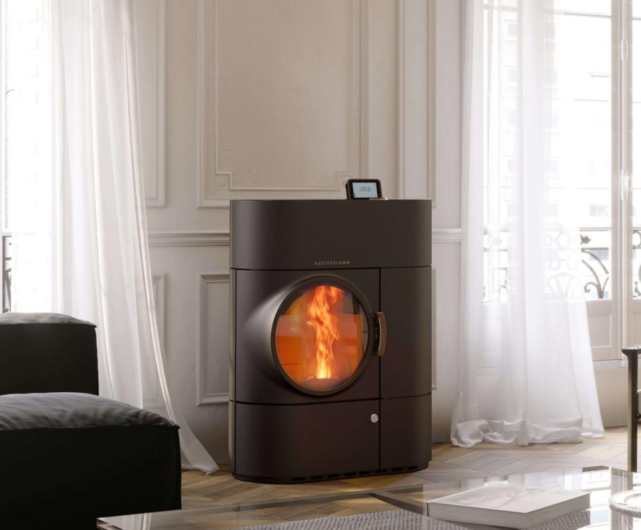Tout comme le poêle à pellets, le poêle mixte peut être mis en route, programmé et commandé par le biais d’un écran sur l’appareil ou à distance, avec une application. Il est donc possible de faire démarrer le poêle en mode Pellets même si vous n’êtes pas chez vous. Si vous souhaitez profiter de la convivialité du bois et du jeu des flammes depuis votre canapé, passez tout simplement en mode Bûches : il vous suffit de mettre des bûches dans l’appareil, qui reconnaît immédiatement le changement de combustible. Pour allumer le feu, les appareils utilisent les pellets. Les poêles mixtes d’Austroflamm peuvent également être utilisés en cas d’urgence (sans électricité*) et représentent donc une possibilité de chauffage autonome et à l’abri des crises.
